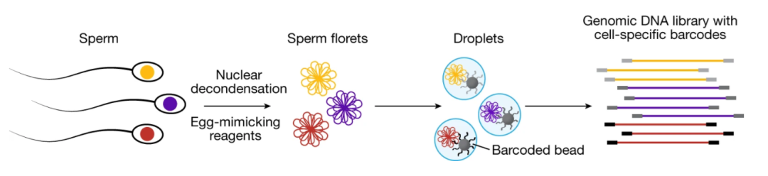 为了研究减数分裂的各个过程以及它们如何在染色体、配子和人类之间发生变化,研究人员开发了一种名为“Sperm-seq”的新型全基因组测序工具,能够同时对成千上万个单精子基因组进行并行分析。由于精子基因组被紧密压缩,研究人员的Sperm-seq方法必须首先使其易于接近。为此,研究人员使用类似于卵细胞酶的试剂进行了相关操作来使精子原核去致密性。随后,研究人员将产生的精子DNA碎片包裹在带有磁珠的液滴中,这些液滴将DNA条形码添加到精子DNA中。在此过程中,研究人员采用了三种技术:Drop-seq、10x Genomics Chromium Single Cell DNA和10x Genomics GemCode。同时,他们开发并调整了计算工具,用于确定染色体时期、倍性并发现交叉事件。