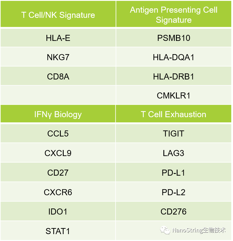 肿瘤发炎指数(Tumor Inflammation Score)主要标记物及通路 ,来源:NanoString Technologies