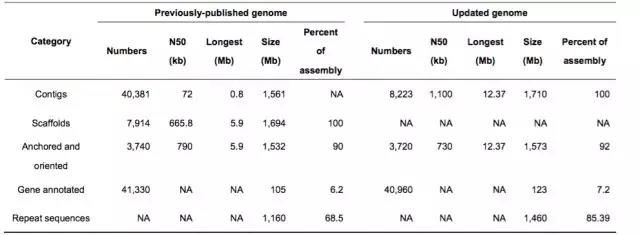 图2 亚洲棉基因组更新前后组装结果的比较