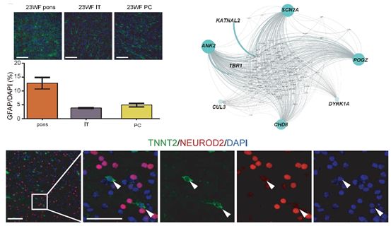 区域细胞组成差异,区域特异基因验证及自闭症风险基因互作网络
