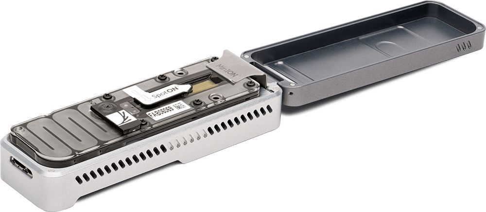 除了以上两款产品,还有几项产品的最新动态同样值得关注。在将VolTrax文库制备仪v1版本(Brown称之为“原型机”)提供给早期用户后,Oxford Nanopore一直在致力于研发该文库制备仪的v2版。如今,v2版将在今年8月份发货,该版本可以同时处理10个样本,具有15个入口,可以进行PCR,并提升了磁力控制,能够提供用于DNA和RNA质控的荧光检测。整套设备定价为8000美元,其中包含文库制备仪、多种配套试剂和MinION 流动槽。另一款名为“MinION Mk1C”的设备可将MinION或Flongle设备器与MinIT计算模块(MinIT是Oxford Nanopore开发用于替代MinION必须配置的笔记本电脑)整合到一起,MinION Mk1C预计将在今年年底推出。
