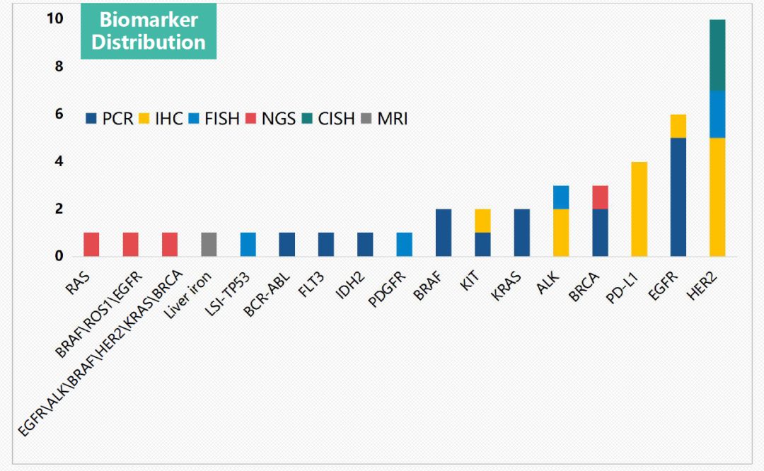 图3. FDA批准的CDX在各Biomarker中的分布情况