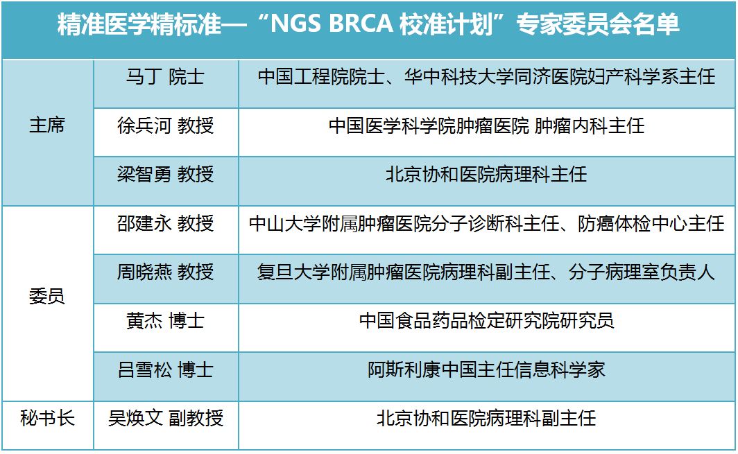 精准医学精标准—“NGS BRCA校准计划”专家委员会名单