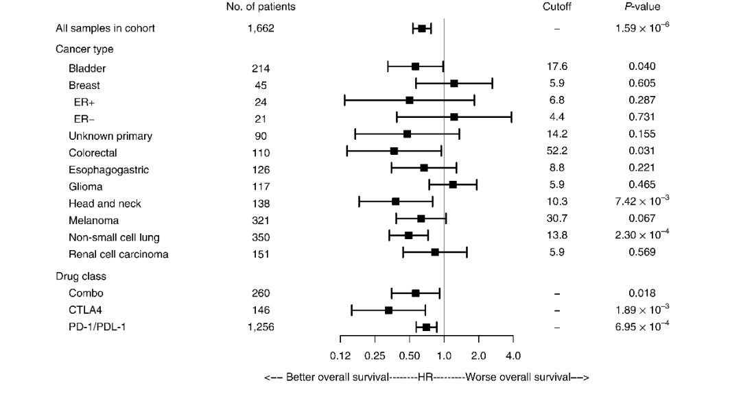 1. Tumor mutational load predicts survival after immunotherapy across multiple cancer types