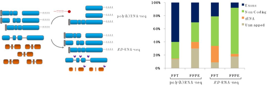 图5. poly(A)RNA-seq和RD-RNA-seq数据分布示意图